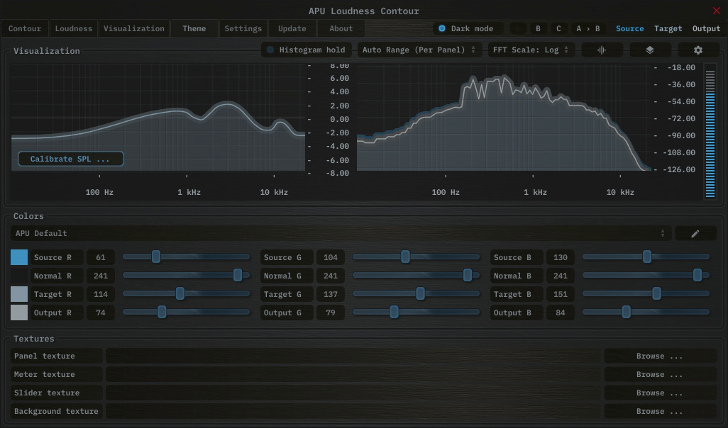 The theme tab contains parameters related to color themes. Here you can select between the bank of color theme presets, or configure the individual colors yourself.