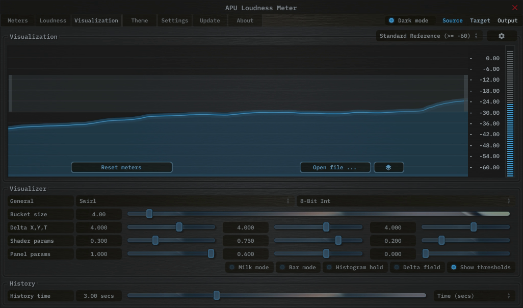 The visualization tab contains parameters related to real-time configuration of the meter’s visualizations. This section describes these various settings.